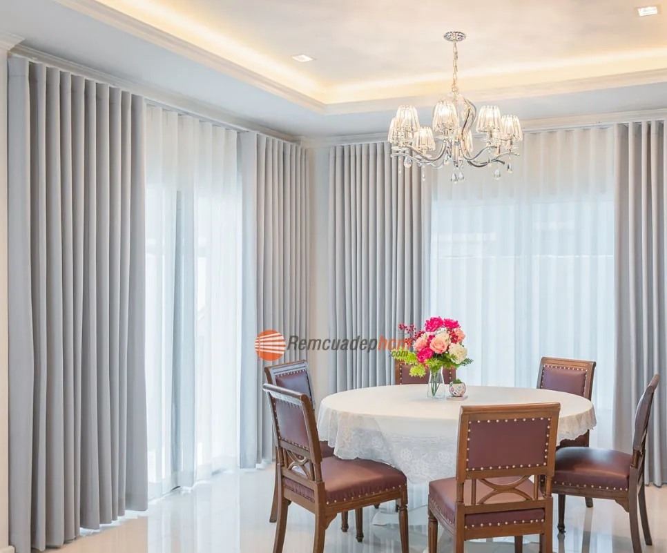 Rèm 2 lớp màu ghi đang trở thành xu hướng được nhiều gia đình yêu thích nhờ vẻ đẹp hiện đại, tinh tế mà nó mang lại. Màu ghi không quá nổi bật nhưng lại rất dễ phối hợp với các gam màu nội thất khác, tạo nên tổng thể hài hòa và sang trọng cho không gian sống. Với thiết kế 2 lớp gồm một lớp vải dày chống nắng và một lớp voan nhẹ nhàng, bạn vừa kiểm soát được ánh sáng theo ý muốn, vừa giữ được sự riêng tư cho ngôi nhà.