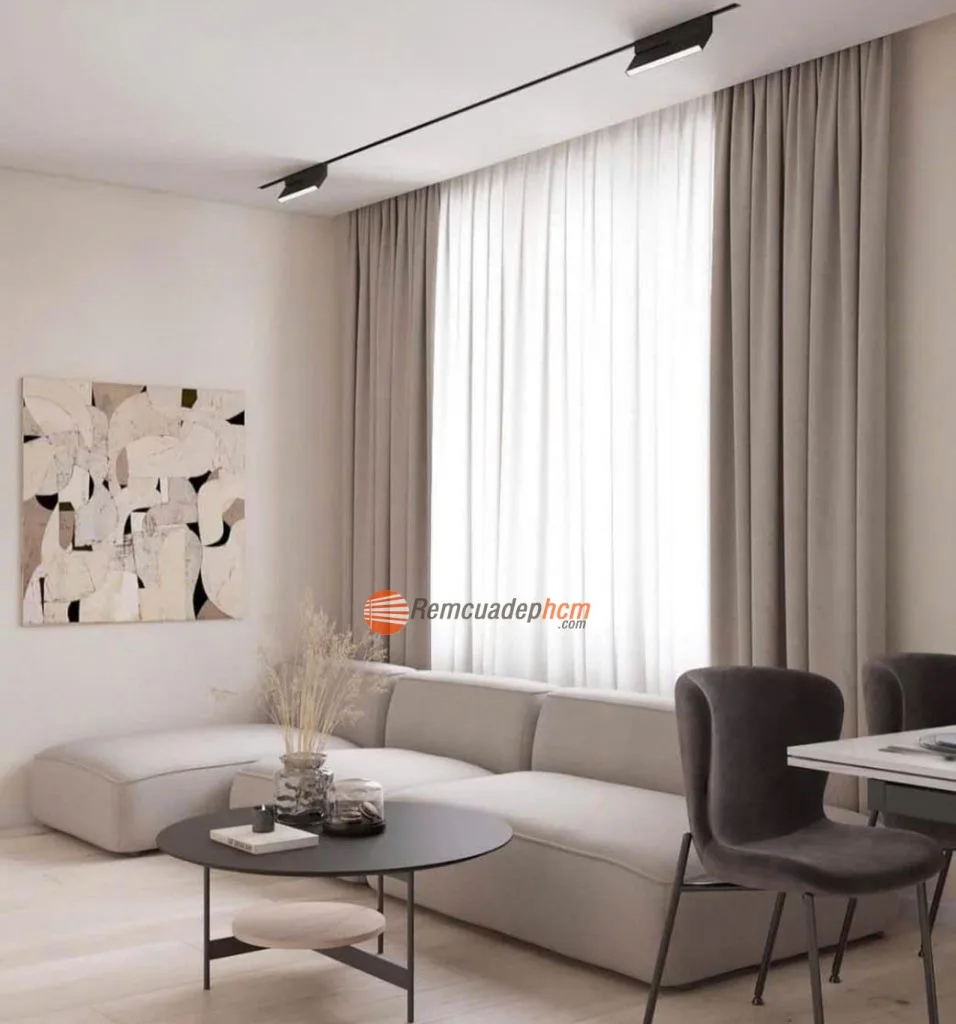Về mẫu mã, những mẫu rèm hai lớp đẹp thường kết hợp một lớp voan trắng nhẹ nhàng bên trong với một lớp vải dày bên ngoài. Sự phối hợp này không chỉ giúp điều chỉnh ánh sáng dễ dàng mà còn tăng thêm nét tinh tế cho thiết kế phòng khách phong cách sang trọng. Lựa chọn màu sắc cũng rất đa dạng: gam màu trung tính như xám, kem, trắng luôn được ưu ái vì dễ phối đồ nội thất; hoặc bạn có thể tạo điểm nhấn bằng các tông xanh navy, vàng đồng để căn phòng thêm phần nổi bật.