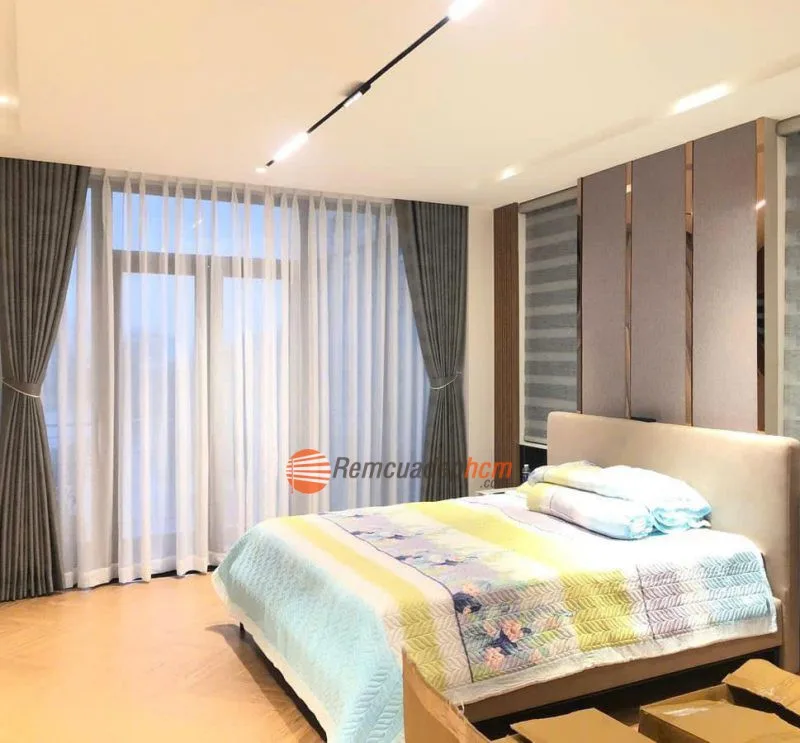 Rèm vải 2 lớp Hàn Quốc chống nắng, giữ phòng ngủ mát mẻ, sang trọng.