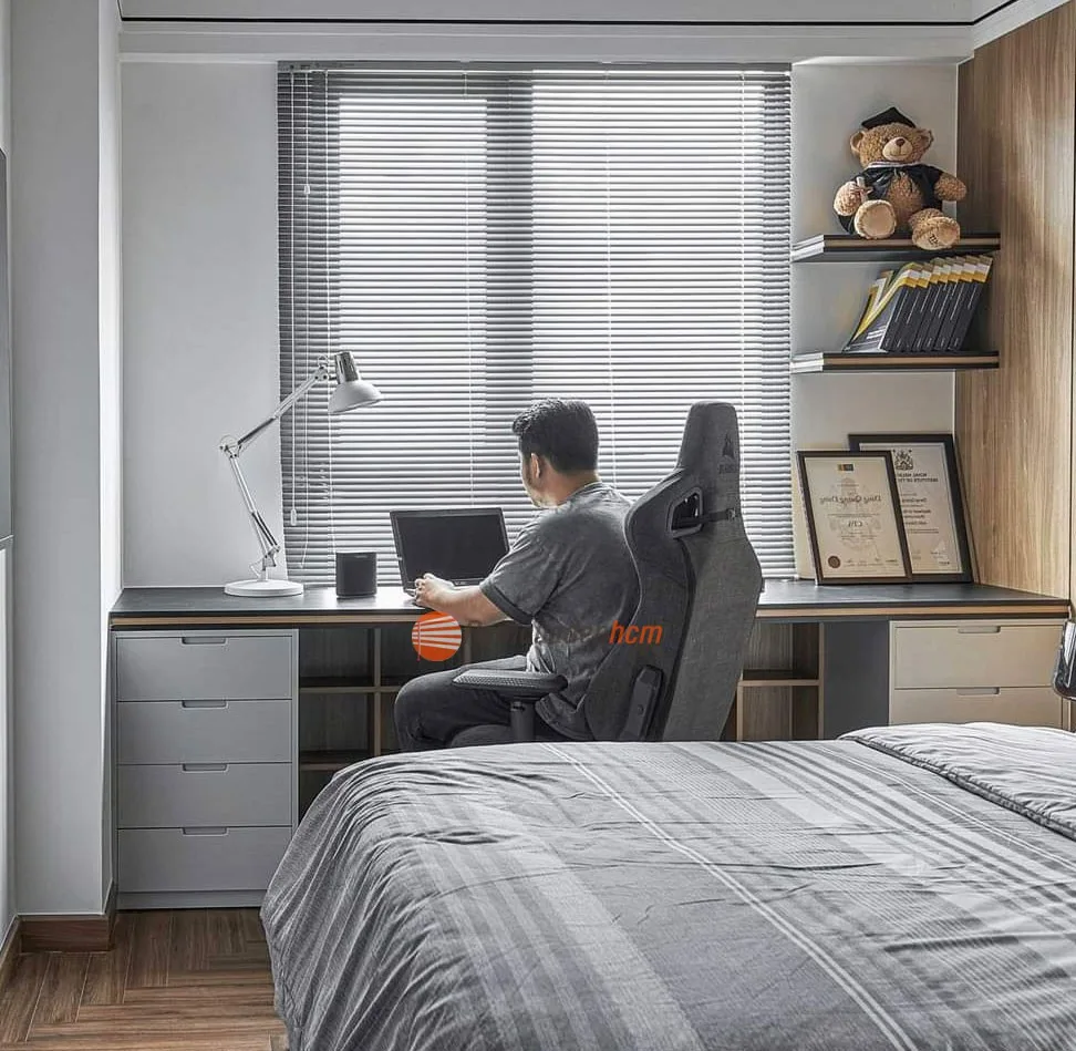 Nếu bạn thích sự gọn nhẹ và tiện lợi thì rèm cuốn phòng ngủ chính là “chân ái”. Loại rèm này giúp kiểm soát ánh sáng tốt mà vẫn đảm bảo tính thẩm mỹ hiện đại. Ngoài ra, rèm cuốn còn rất dễ vệ sinh và phù hợp với nhiều kiểu thiết kế nội thất khác nhau.